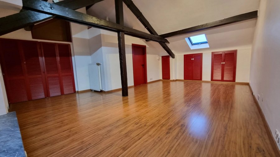 Grousse Raum 1 zou Garagenstellplatz gëtt separat fir €120 pro Mount vermiet. Keng zousätzlech Käschten. Eng oppen Trepp verbënnt déi zwee Niveauen a füügt dësem eenzegaartegen Raum e elegante Touch derbäi. No bei allen Annehmlichkeeten an dem ëffentlechen Transport. Ideal fir eng Famill, déi no Komfort a Plaz sicht!