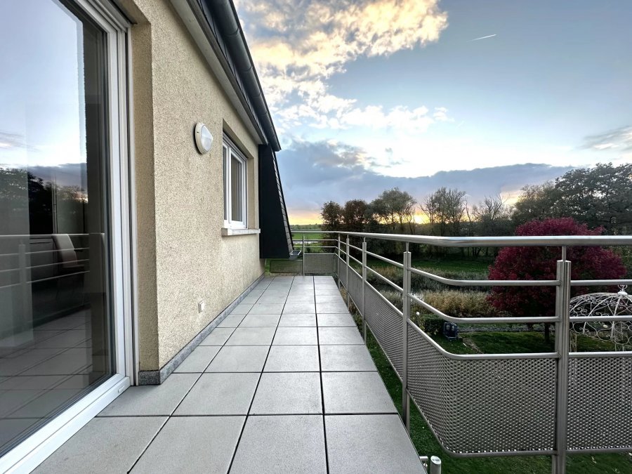 - Separat ausgestatt Kichen - 1 Buedzëmmer mat WC - 1 separat WC - 1 grousse Schlofkummer - 1 Kannerzëmmer - 1 klengen Schlofkummer/Büro - Grousse Balkon Grousse Daachbuedem um 3. Stack.