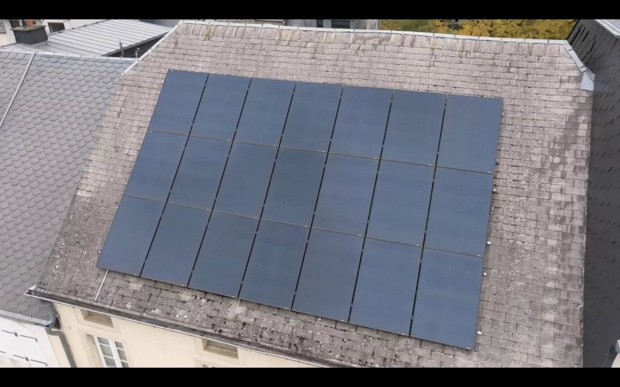 La maison est équipée de technologies modernes telles que des panneaux photovoltaïques.