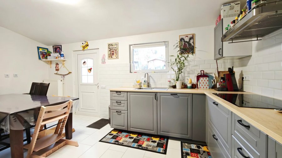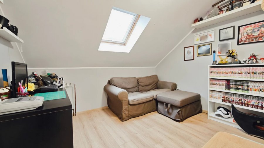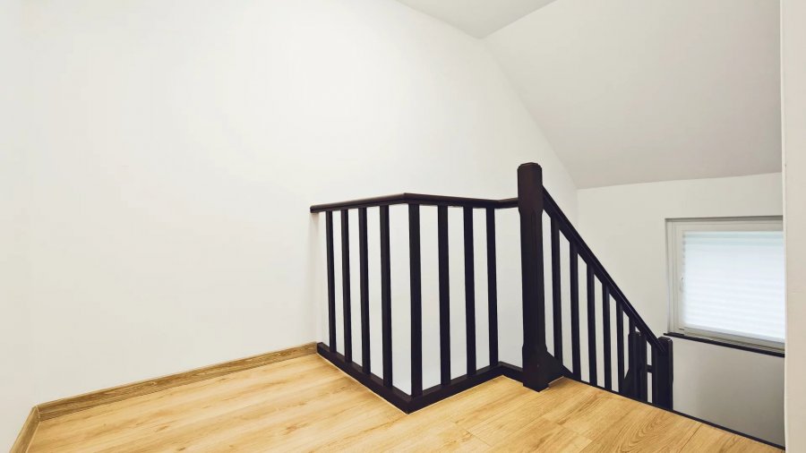 - 1 Büro (9 m²) oder Kannerzëmmer - Klengt Dachgeschoss fir Lagerung Käller: - Garage fir 1 Auto - Keller - Toilette - Wäschkummer - 1 Plaz fir dobaussen Parken Haaptmerkmale: Haus komplett am Joer 2020 renovéiert