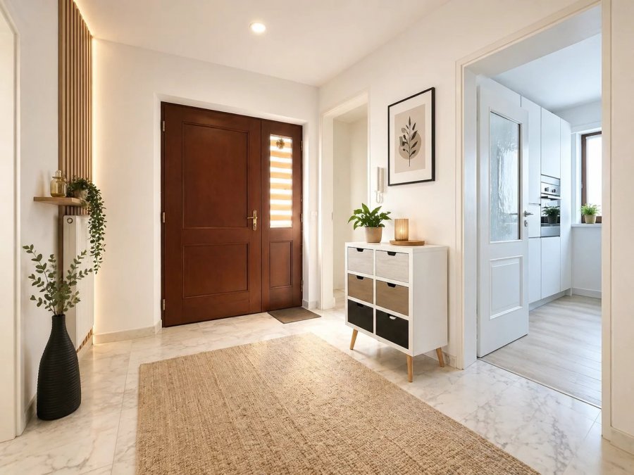 - Eingangshalle, die die Etagen verbindet und Zugang zum Keller/Untergeschoss bietet