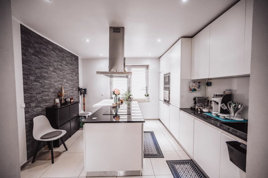 - Voll ausgestatt Kichen mat enger zentraler Insel, halb oppen - Iesszëmmer an Wunnzëmmer niewent der Kichen, all gutt beliicht 1. Stack: - 2 Schlofkummeren (15,5m² + 14,5m²) - Buedzëmmer, inklusiv Waschtisch, Buedewanne, Handduchdrécher, Toilette, Fënster no baussen Dachgeschoss
